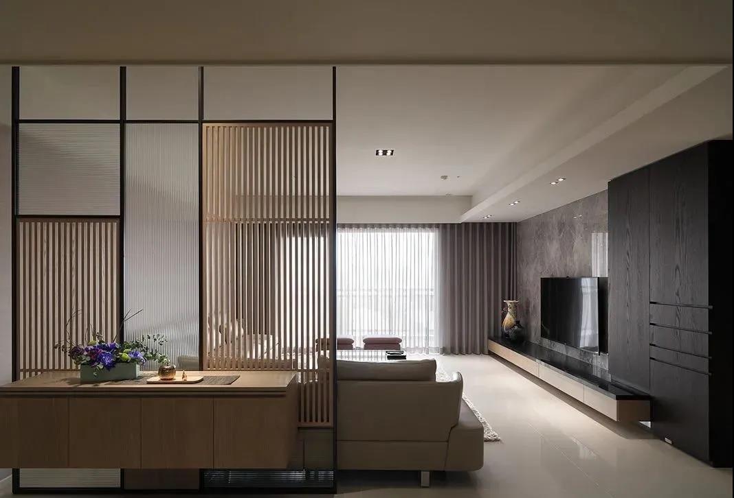 一个柜子、一张沙发都可以成为隔断,在小户型中,往往会利用柜子来做隔断,玄关做个柜子不仅充当鞋柜还能作为隔断;在横厅户型中,用沙发作为隔断区分客餐厅空间,或者做个书柜、酒柜作为隔断,下半部分实体柜,上半部分镂空置物架,即美观又能保持空间的通透性。