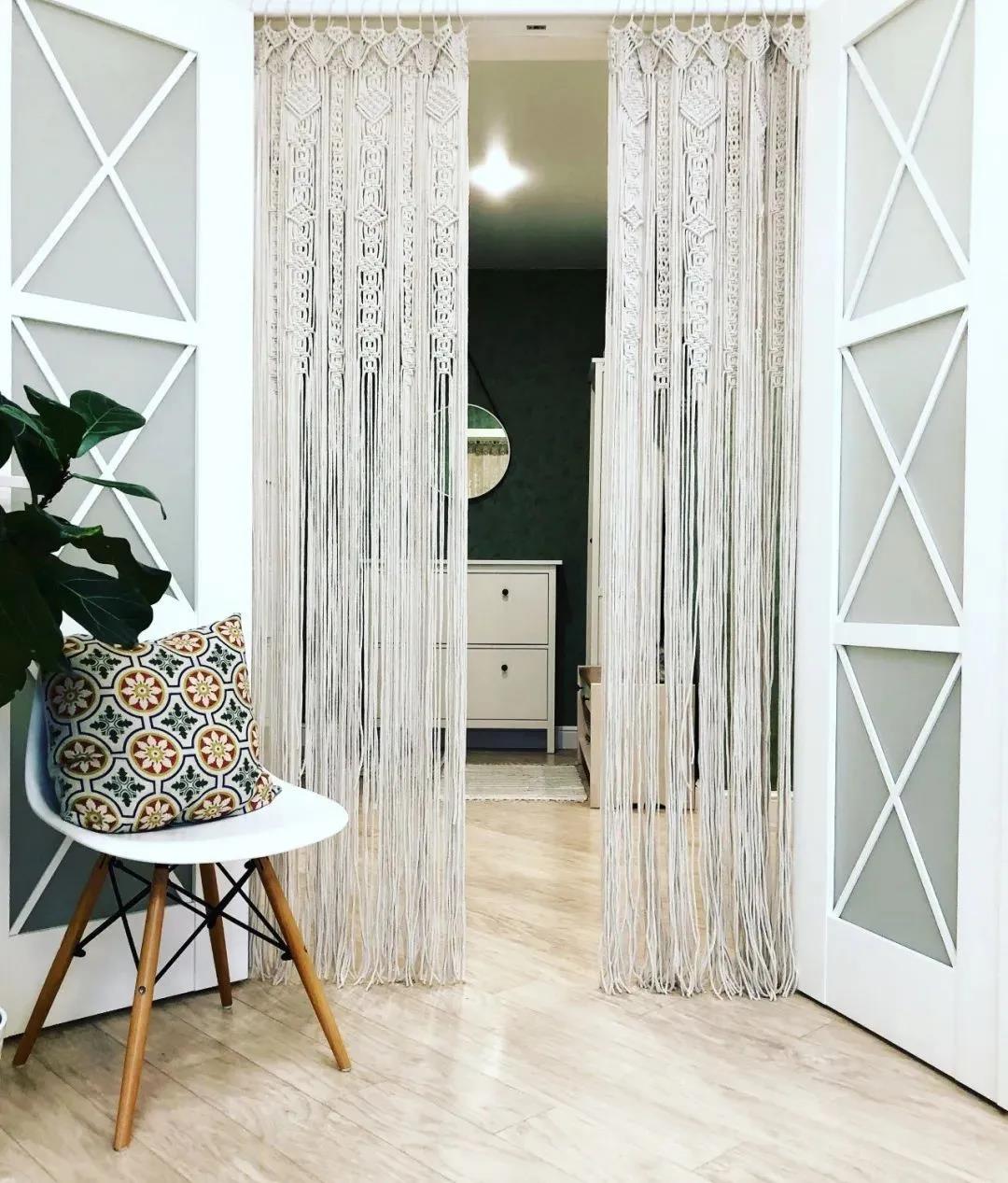 珠帘可以作为玄关隔断,也可以装在门上,装饰性强但实用性低;竹帘是儿时的记忆,老房子的窗户上以及门上都会挂着竹帘,一般出现在原木风这类装修风格中。