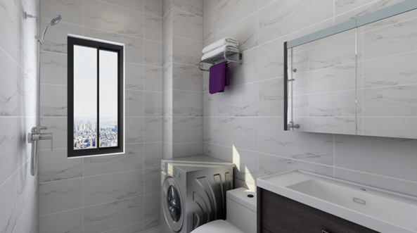 很多时候,由于房间户型设计的局限性,卫生间的面积比较狭小,但科学合理的设计,可以让卫生间看起来明亮宽敞且使用,虽然卫生间狭小但是不要忽略卫生间这个小地方,他关系着全家人的健康以及生活质量,卫生间设计要注意防水,防潮,通风,美观和易清洁同样重要,卫生间里面采用悬空式浴室柜,这样比较好清洁大理,马桶后面加上花片点缀,为整个卫生间增添了活力。