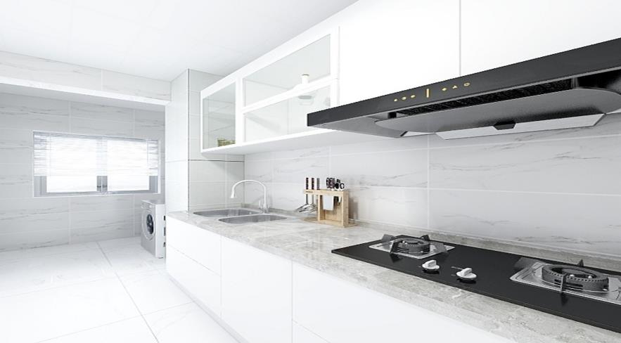 简约风格厨房设计特点,尽可能不用装饰和取消多余的东西,强调形式应更多地服务于功能。厨房里除了保存最基本的贮藏、洗刷、烹饪等功用外,已很难找到别的不必要的东西,刀叉等有用东西也只是满意主妇的最基本需要,而不是多得让人分不清怎么运用的各种东西。精约人士眼里繁琐的功用被省掉,底柜的规划也摒弃传统竖立在地上的方式,水、电、气的管线都被隐藏在墙内。体现时代特征为主,没有过分的装饰,一切从功能出发,讲究造型比例适度、空间结构图明确美观,强调外观的明快、简洁。体现了现代生活快节奏、简约和实用,但又富有朝气的生活气息
