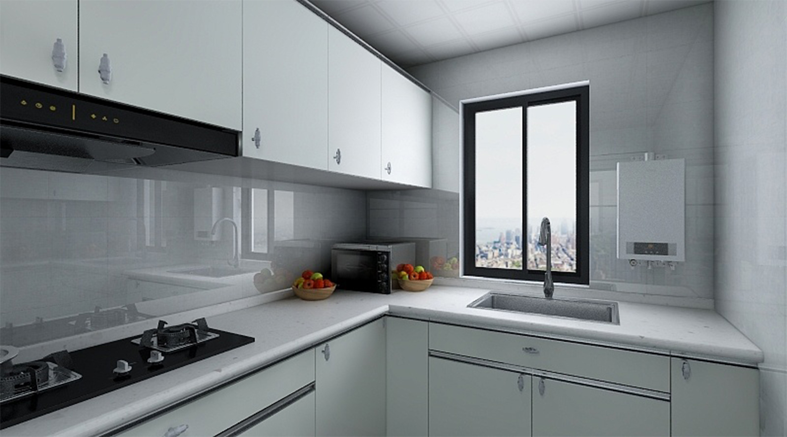 厨房空间采光也不是很理想,此时在选择瓷砖上也是需要色彩比较浅,表面比较明亮的瓷片砖,这样的话会大大缓解采光不足的缺陷,此外也要注重实用与储物空间,对于大多数业主来说,厨房的储物空间似乎都没有够过,随着时间的推移,锅碗瓢盆跟衣服一样,越来越多,空间越来越拥挤,所以再做厨房设计的时候尽量注重尽可能加大厨房的储物空间。