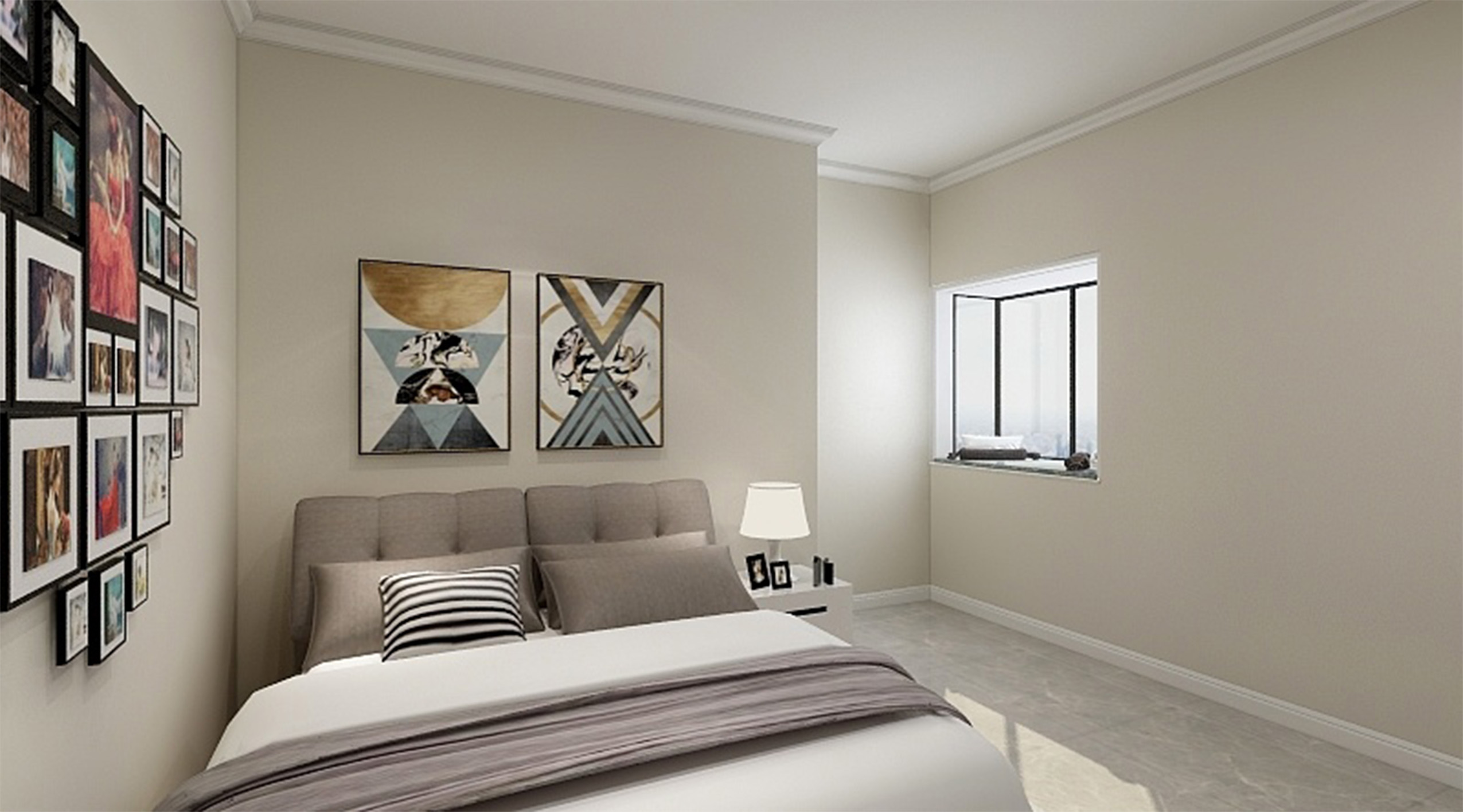 2:主卧室的墙面颜色和家具颜色也是以浅色为主,由于空间不算小,在考虑多个方案后,感觉还是把衣柜放到了床对面的那面墙,这样的话不仅空间布局合理,而且满足的功能更多,能增加更多的储物空间。