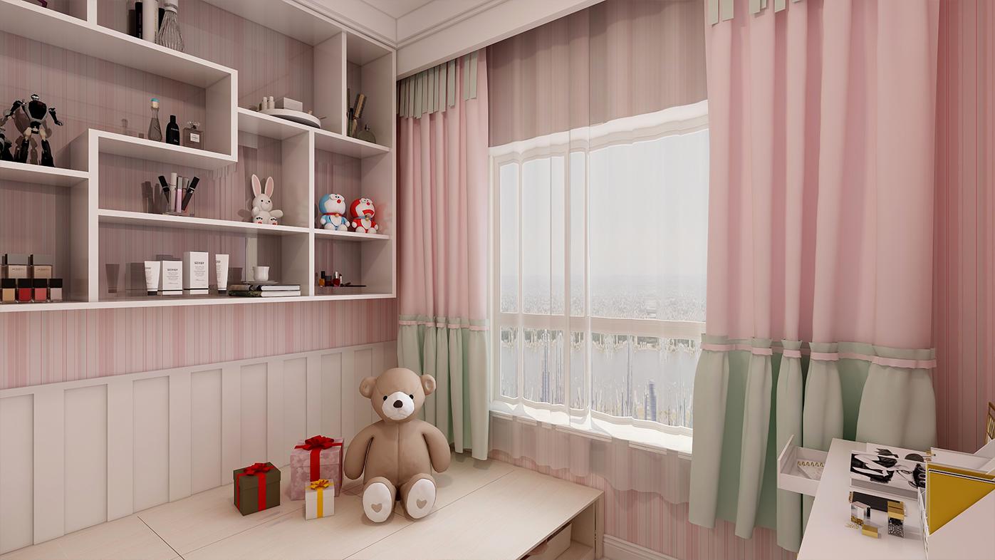 这个卧室做的榻榻米,考虑到女孩儿化妆品和衣服之类的东西比较多,所以选择榻榻米可以增加储物空间,通过我们交流,我就感觉每个女孩都有一个公主梦,加上他女朋友白白净净,穿着粉色的上衣,我就感觉来一个粉色调的公主房,突出甜美的感觉。搭配也稍稍的采用了一些卡通元素,但不是那种很幼稚的卡通,靠窗户的地上还加了一个圆形小地毯,提供娱乐和休闲。