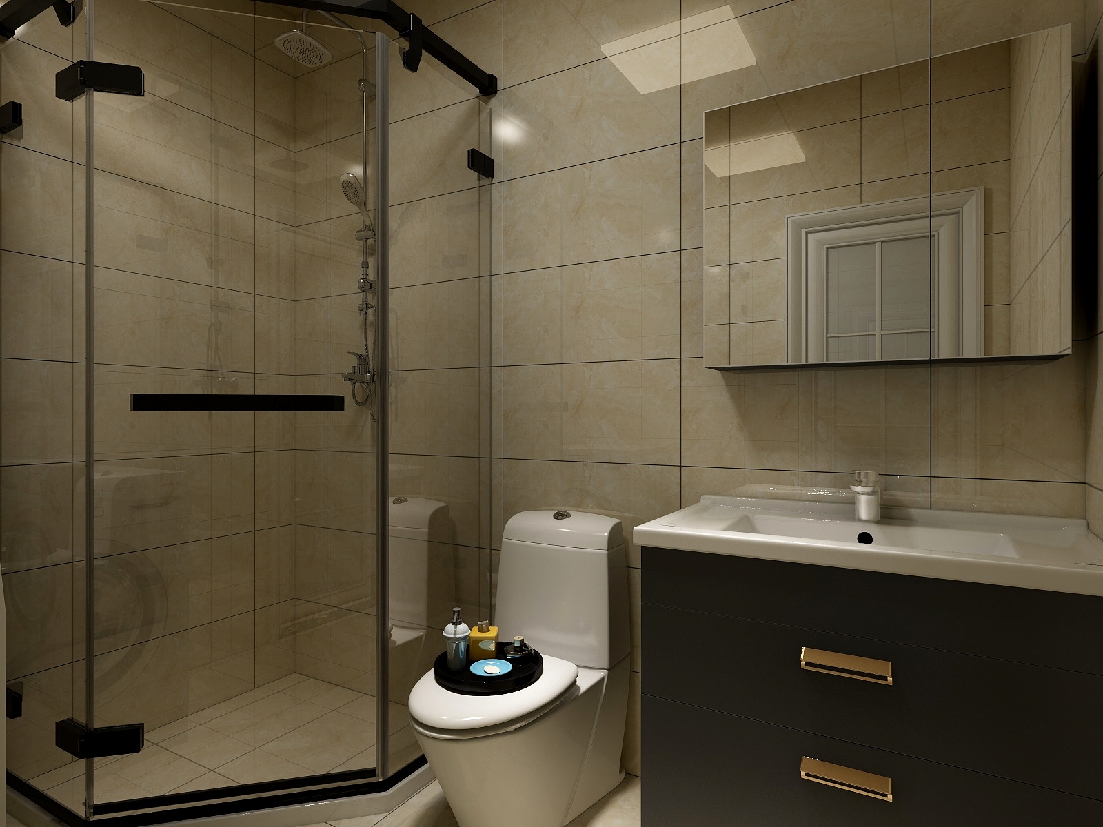 小卫浴间选用了深浅搭配的色调,让整个空间明朗、整洁。卫生间设计应该以实用大方、安全方便、易于清洁、美观简洁为主,卫生间会长期和水打交道,因此内部装修应该做好防水措施,浴室的墙壁和地面应该选择防水防潮耐腐蚀的优质材料,整体应该给人一种明亮简洁的感觉,避免过度的繁琐设计,给人一种累赘感。卫生间的色彩选择具有清洁感的冷色调,并与同色调的搭配,低彩度、高明度的色彩为佳。对于洁具,追求合理、合适的洁具。浴室装饰要讲究实用,考虑卫生用具和装饰的整体效果。