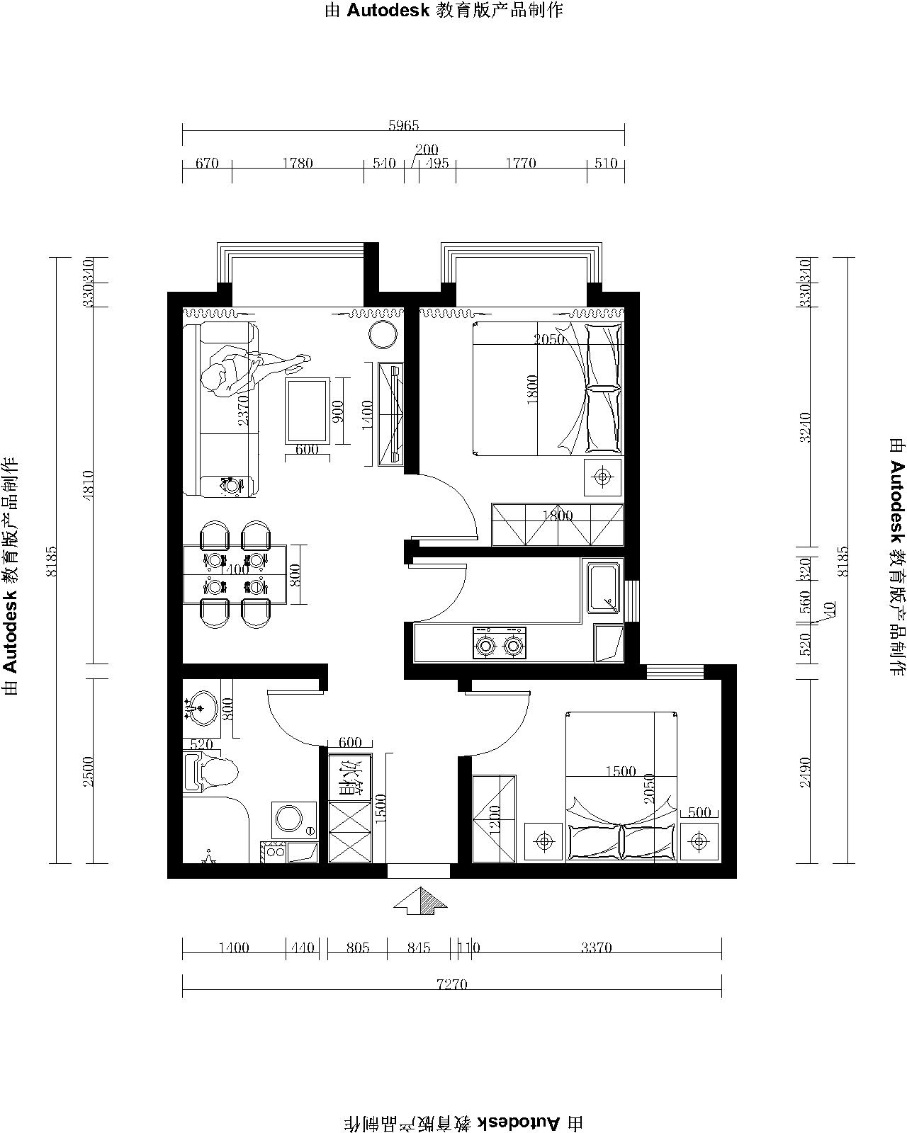 房屋户型:两室两厅一卫一厨