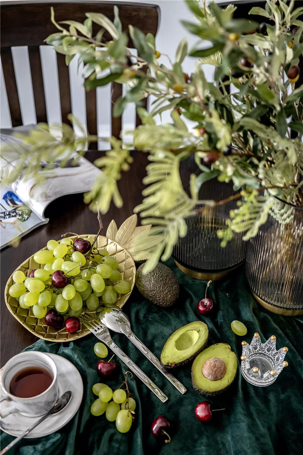 餐桌椅延续经典美式的深棕色,气质满分又不失品味的软装搭配,让生活更有仪式感。