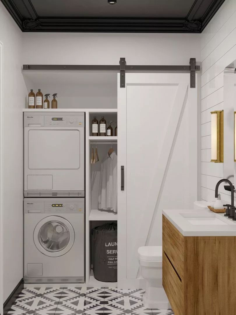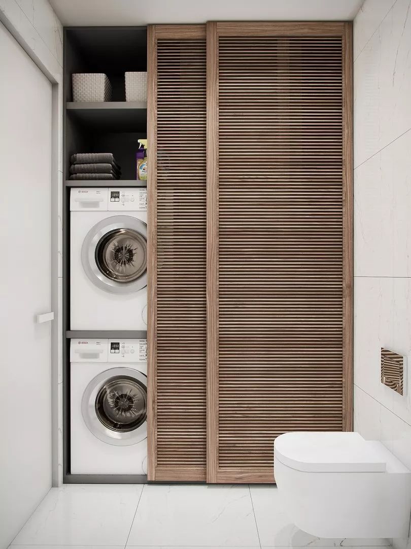 将洗衣机的收纳柜,装上折叠门或推拉门也可以让洗衣机寿命更长~
